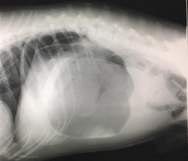胃捻転の秋田犬
